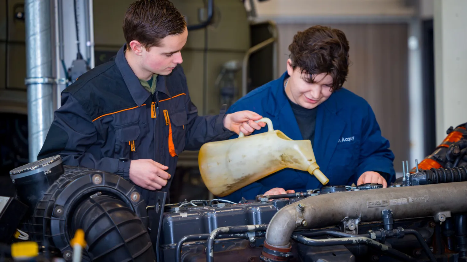 Studenten aan de opleiding Basis Bedrijfsautotechniek werken bijvoorbeeld bij een truckdealer of transportbedrijf.