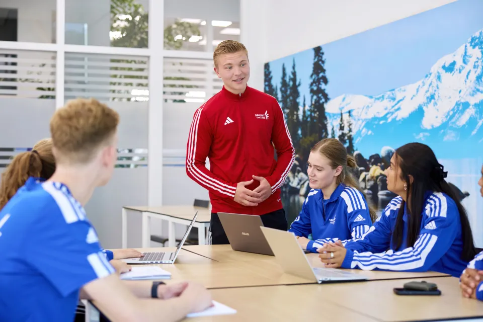 - kledingpakket met een sweater, pantalon, t-shirt, short en softshell jack met je naam en het logo van het Sport College: € 240