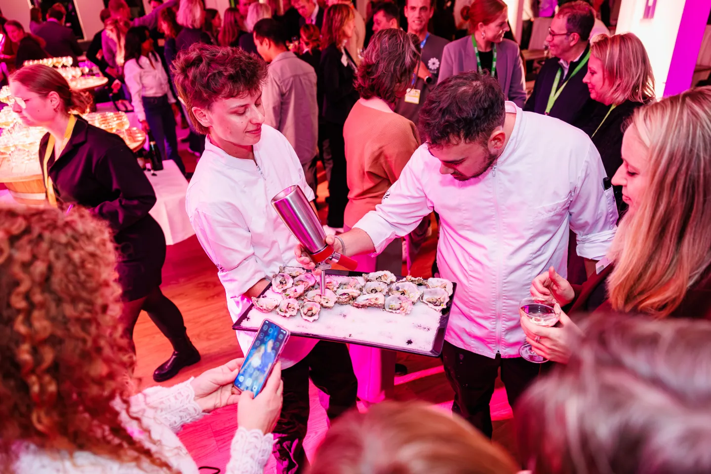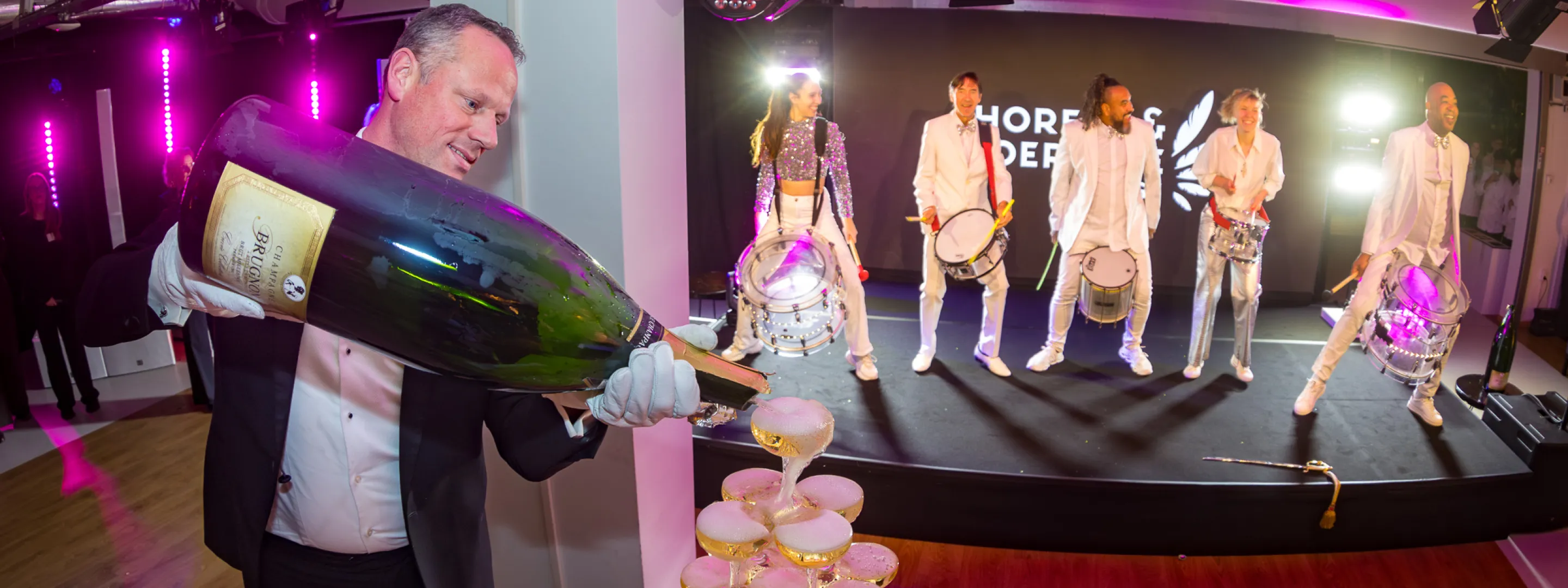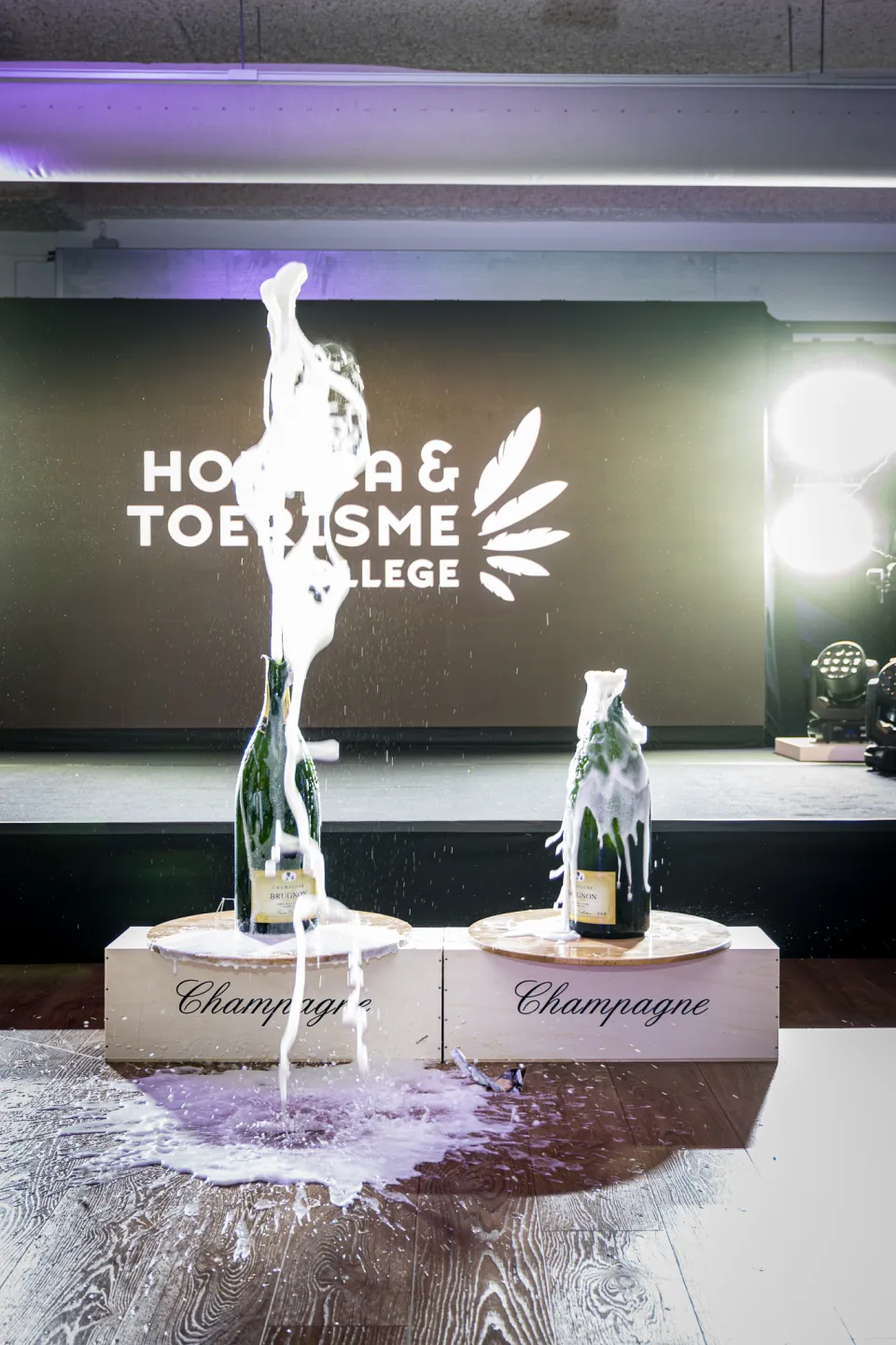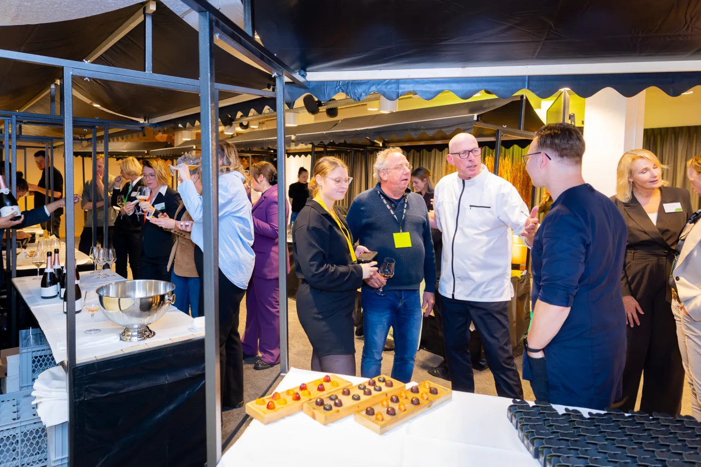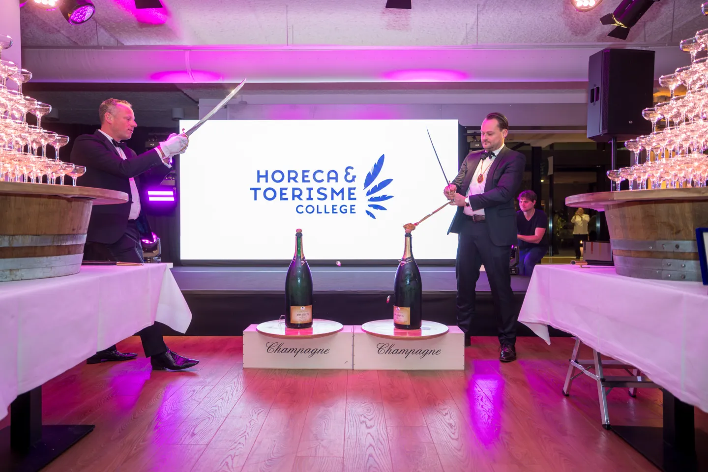 De tour werd feestelijk afgesloten in de ontmoetingsruimte, waar alle gasten samenkwamen voor het hoogtepunt van de middag. Directeur Suzanne Staal sprak de aanwezigen kort toe, waarna het spectaculaire sabreren van de champagne volgde. Vervolgens werd de enorme champagnetoren uitgeschonken en hieven de aanwezigen gezamenlijk het glas voor een feestelijke toast. Live muziek van een drumband en een DJ zorgden voor een feestelijke sfeer, terwijl gasten de kans kregen elkaar te ontmoeten en te netwerken.