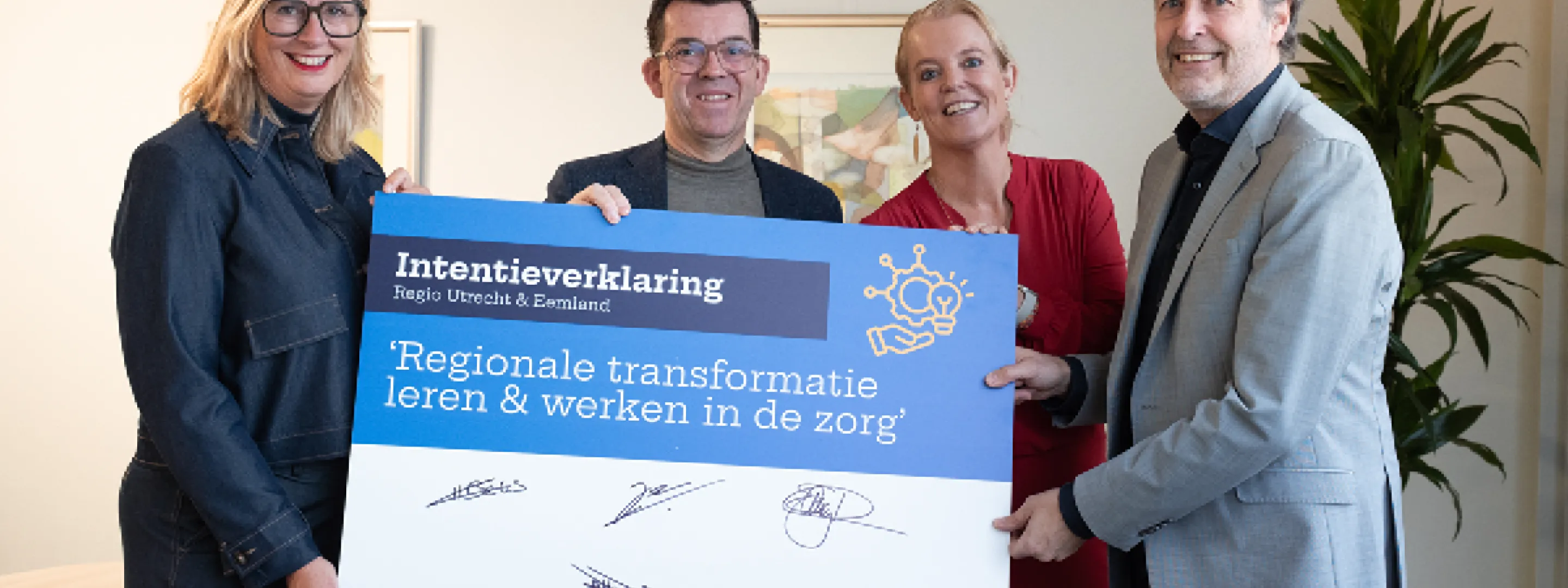 Daarom bundelen we samen met de ouderenzorgorganisaties verenigd in de IVVU, onderwijsinstellingen in de regio Utrecht en Eemland en werkgeversorganisatie Utrechtzorg de krachten. Om deze nieuwe samenwerking te onderstrepen is op 17 december de intentieverklaring ‘Regionale transformatie leren & werken in de zorg’ ondertekend.