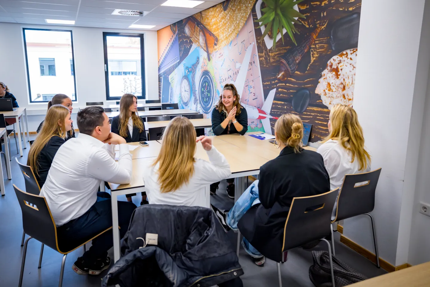 Student Laura, derdejaars van de opleiding Event Manager, vertelt enthousiast: “Ik had net een gesprek met Beekse Bergen. Ik had niet verwacht dat er zóveel te doen is op het gebied van evenementen, dat verraste me echt. Alleen de reistijd is misschien een uitdaging. Straks nog in gesprek met Fletcher Hotels en De Krim Texel. Daar ben ik ook erg benieuwd naar.”