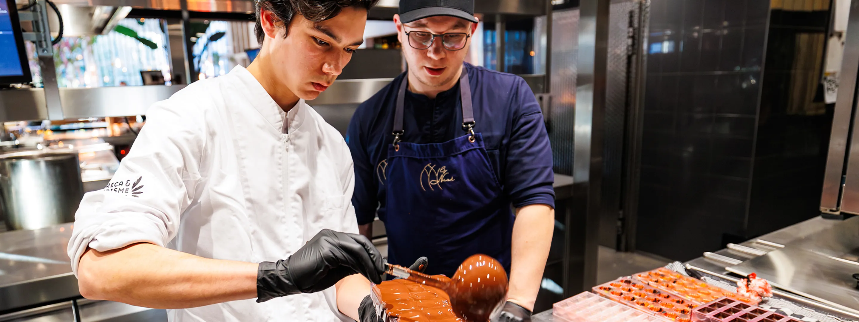 Vervolgens bezocht de groep Kasteel Kerckebosch in Zeist, waar chef-patissier en oud-student Nick de Kruijf de geheimen van zijn ambachtelijke bonbons onthulde. De geur van chocolade vulde de keuken, terwijl de studenten zijn meesterwerken mochten proeven. Uiteraard mochten de studenten ook zelf aan de slag om bonbons te maken.